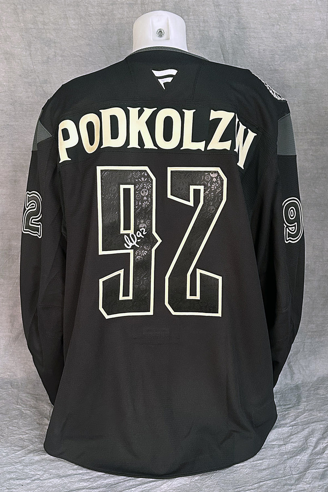Welcome to the Edmonton Oilers Community Foundation 2026 Online Charity Auction! Show your support for the Foundation and the great charitable initiatives they undertake in Oil Country by bidding on this Vasily Podkolzin #92 - Autographed 2025-26 Edmonton Oilers Dia de los Muertos (Day of the Dead) Ltd Edition Fanatics Practice Jersey (Autographed Only / Not Worn). The Edmonton Oilers held their annual Dia de los Muertos (Day of the Dead) game on Saturday, November 1, 2025 when the team hosted the Chicago Blackhawks at Rogers Place. With the Oilers Dia de los Muertos logos and design elements on full display throughout the arena, this cultural celebration included vibrant pageantry paying tribute to this unique holiday. Although NHL teams are no longer permitted to wear cause or celebration based jerseys during the pre-game warm up a complete set of these special jerseys were made to commemorate the occasion. They were then autographed by the players with the purposes of auctioning off all in support of charity! These Fanatics made pro quality black with white trim practice jerseys with fight strap were customized with the very special Edmonton Oilers Dia de los Muertos logo and design elements. The logos were designed by Cristoval Castillon, Design Lead, OEG Sports & Entertainment. "I've always wanted to bring a little bit of Mexican representation to the Oilers and with our Dia de los Muertos game, I found an opportunity to highlight aspects of the traditional holiday such as the calaca - the skeletal figure featured on the main crest of the Oilers Dia de los Muertos jersey - most popular in modern Day of the Dead costumes and decorations," Castillon said. "The main crest is flanked on the left shoulder of the jersey by our friend Hunter the Lynx, who adorns a quetzal feathered headdress once worn by those in high power, along with their deities, within ancient Aztec civilization. The 'Petroleros' logo sits upon the right shoulder adorned with bright sunflowers and marigolds which are highly symbolic of Mexico. On the back of the jersey the respective player's surname is displayed in blue letters on a matching white name bar. Their respective jersey number is also displayed on the back and sleeves in the colorful matching number pattern. This particular jersey is a size 58 and is indicated as such in the collar. Last but not least the jersey has been nicely autographed in silver paint marker on the back number by Vasily Podkolzin! Please note this is an actual NHL practice-weight on-ice authentic jersey (NOT PLAYER WORN) with all lettering, numbering and crests professionally stitched onto the jersey. The jersey will come complete with a Letter of Authenticity from the Edmonton Oilers Hockey Club and official Edmonton Oilers 2025-2026 Season "DIA DE LOS MUERTOS NIGHT, Autographed Jersey Set" Tag including their # and surname sewn into the inside bottom hem of the jersey.