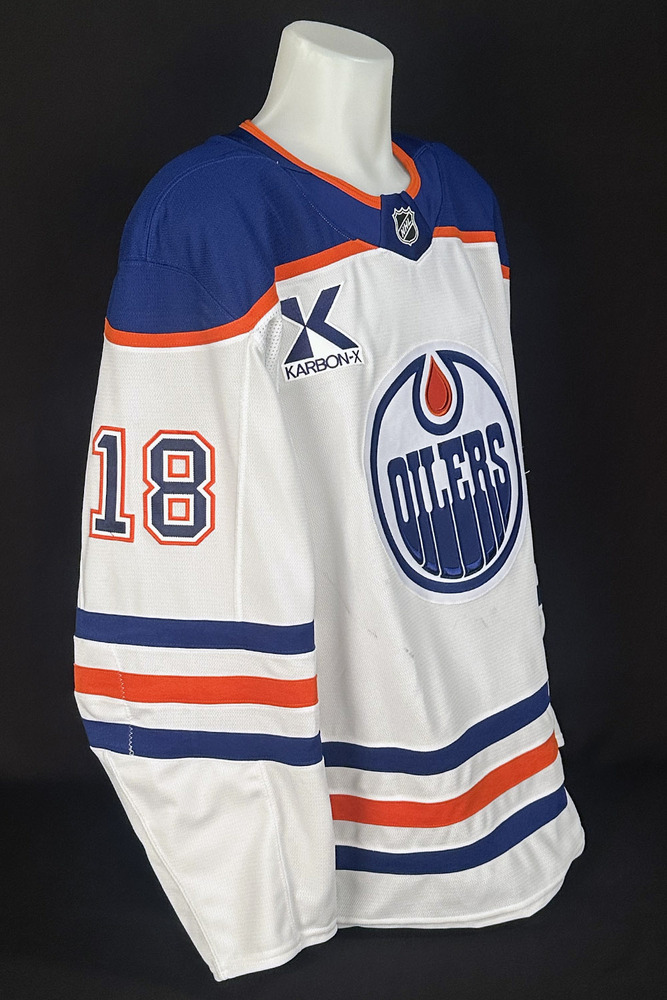 Welcome to the Edmonton Oilers Community Foundation 2026 Online Charity Auction! Show your support for the Foundation and the great charitable initiatives they undertake in Oil Country by bidding on this Zach Hyman game-worn jersey from the Edmonton Oilers road game vs their provincial rivals the Calgary Flames, held on February 4th, 2026 in Calgary. On this night the team wore a brand new set of Oilers white road jerseys made by Fanatics for this one game only and for the purposes of auctioning off with proceeds in support of charity! The jersey features a special uniform set tag with unique serial # sewn into the inside bottom hem. The tag reads "Edmonton Oilers, 2025/2026 Season Game-Worn Jersey, February 4, 2026 at Calgary Flames" along with the player's jersey # and surname. In addition, an Edmonton Oilers Game-Worn Jersey Inventory serial D00529 unique to this jersey only is imprinted on the edge of the set tag. This particular jersey is a size 56 and was worn by Oilers forward Zach Hyman and is crested with his #18 and surname on the back. As is to be expected the game wear is very light considering the jersey was worn for only the one game and was also washed following the game. It will come exactly as worn and is not autographed. In addition to the set tag certification mentioned above the jersey comes complete with a Letter of Authenticity from the Edmonton Oilers Hockey Club.