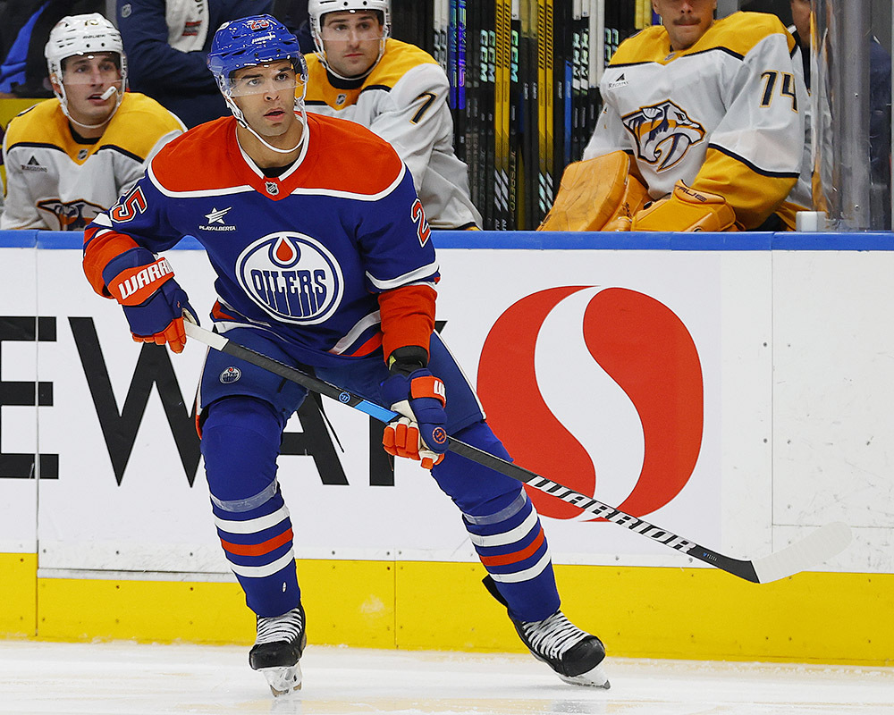 Darnell Nurse #25 - Autographed 2024-25 Edmonton Oilers Game-Worn Warrior Hockey Gloves - Photo-matched To Assist On Connor McDavid's 1000th NHL Point vs Nashville Predators!