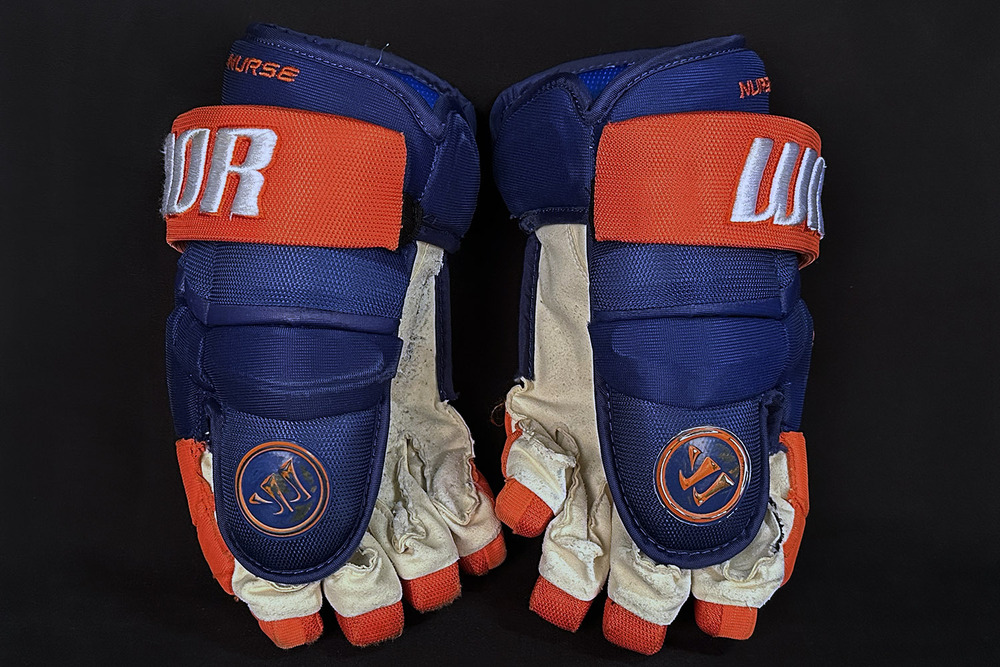 Welcome to the Edmonton Oilers Community Foundation 2026 Online Charity Auction! Show your support for the Foundation and the great charitable initiatives they undertake in Oil Country by bidding on this pair of Darnell Nurse #25 - Edmonton Oilers game-worn hockey gloves. These Warrior Covert Pro royal blue and orange nylon gloves were worn by Nurse during the 2024-25 regular season and have been photo-matched to his assist on Connor McDavid's 1000th NHL point on November 14, 2024 vs the Nashville Predators! They display nice use throughout, with moderate wear in the palms. Both gloves have "NURSE" factory-stitched on the cuffs and have been verified to be worn by Nurse by a member of the Oilers equipment staff. They are nicely autographed in silver marker on both gloves and will come complete with a Letter of Authenticity from the Edmonton Oilers Hockey Club. In addition an Edmonton Oilers Authentic Inventory Hologram and Official Locker Room Equipment Program tag will be included inside the left glove.