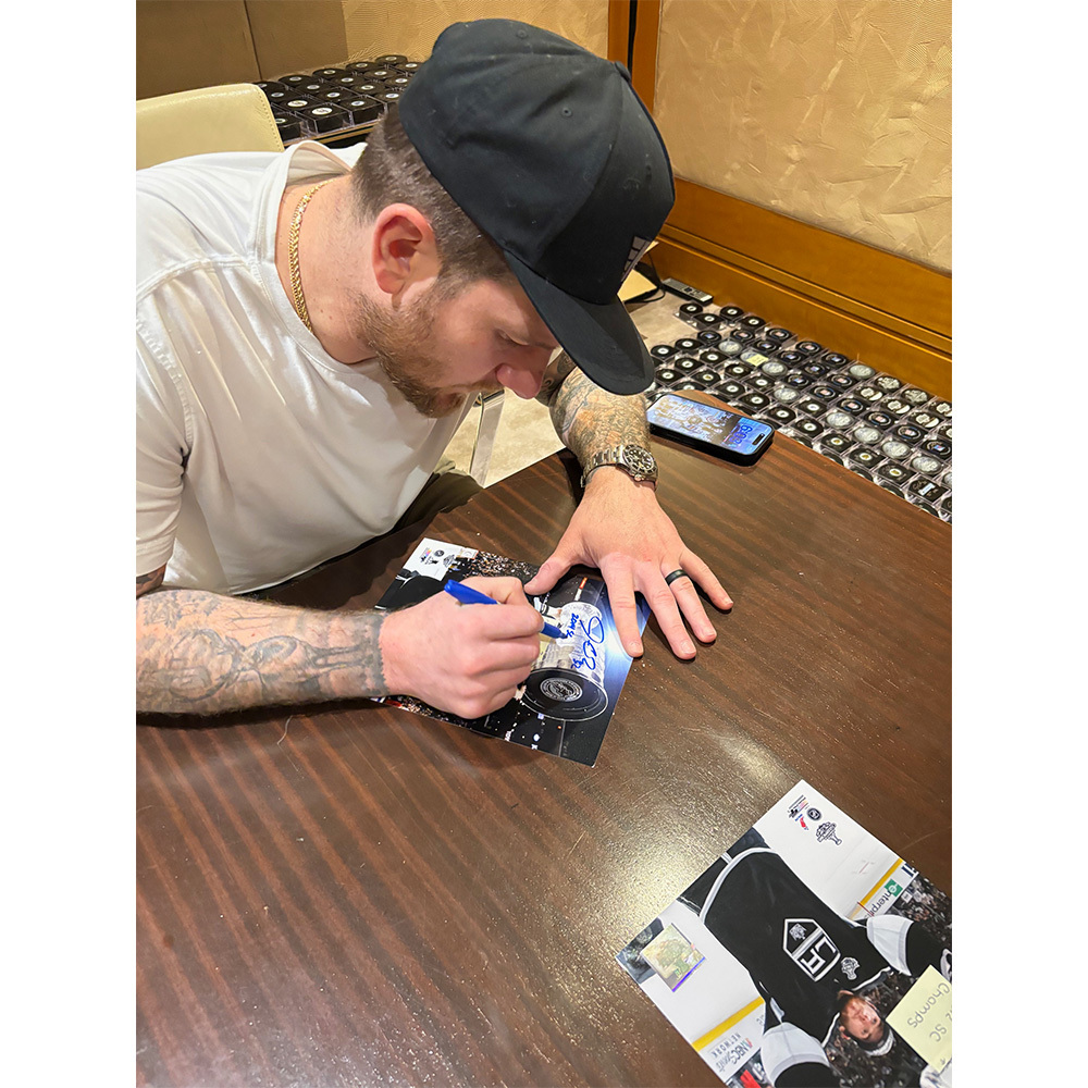 This 8X10 photo has been autographed by superstar goaltender Jonathan Quick. He has added the inscription "2012 SC Champs," commemorating the Kings' first Stanley Cup championship in franchise history. An excellent collectible for any Kings fan.