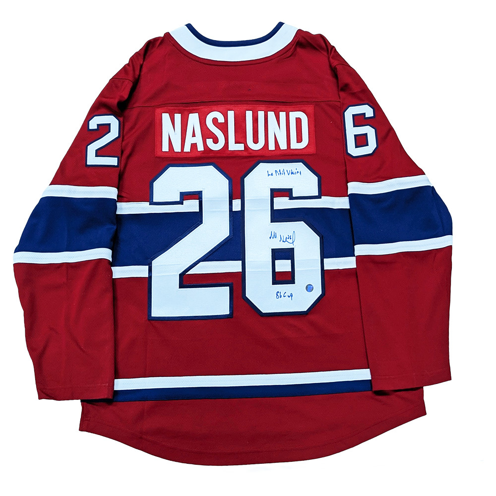Bid on this fantastic Montreal Canadiens Fanatics Breakaway Jersey that has been autographed by NHL great - Mats Naslund. Naslund has added to the value of this jersey by inscribing it with his Stanley Cup winning year and nickname "Le Petit Viking".