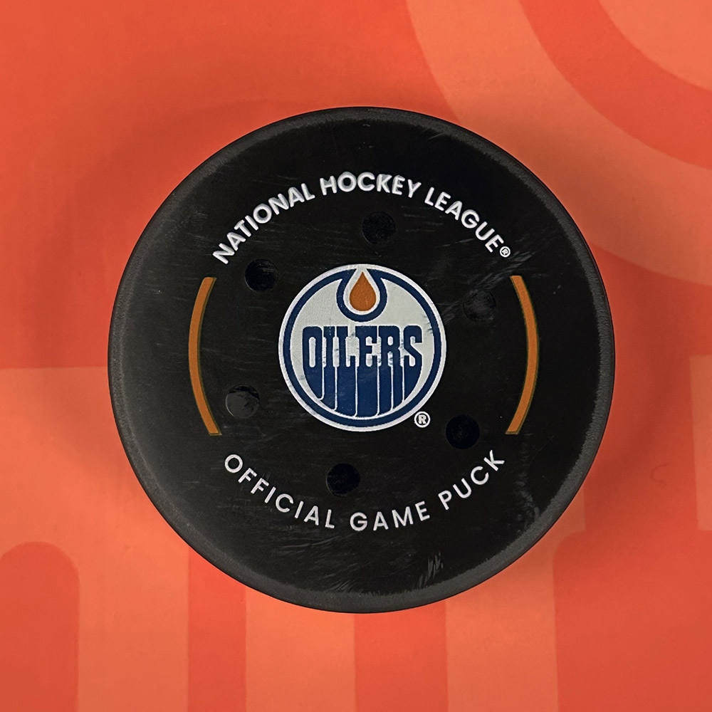 Welcome to the Edmonton Oilers Game Used Goal Puck Program Auction. Available to the highest winning bid in this respective auction lot is the following goal puck collected and authenticated by the Edmonton Oilers official NHL game used goal puck program. Nathan MacKinnon #29 - Colorado Avalanche Goal Puck From February 7, 2025 Vs Edmonton Oilers (21st Goal of Season 2024-25 Season). Following the goal this official Edmonton Oilers NHL Game Puck was provided directly to off-ice officials who promptly labelled it with the details of the goal on a custom puck label which was then applied to the back of the puck. It was then given to Edmonton Oilers game-used equipment program staff for safe-keeping, inventory and authentication purposes. Please note each goal puck is game-used and sold in "as-is" used condition. All goal pucks will come complete with a Letter of Authenticity from the Edmonton Oilers Hockey Club and a tamper proof Edmonton Oilers Authentic Inventory Hologram applied to the back of the puck. Each puck will also come with a custom printed puck case as shown in the auction listing photo.