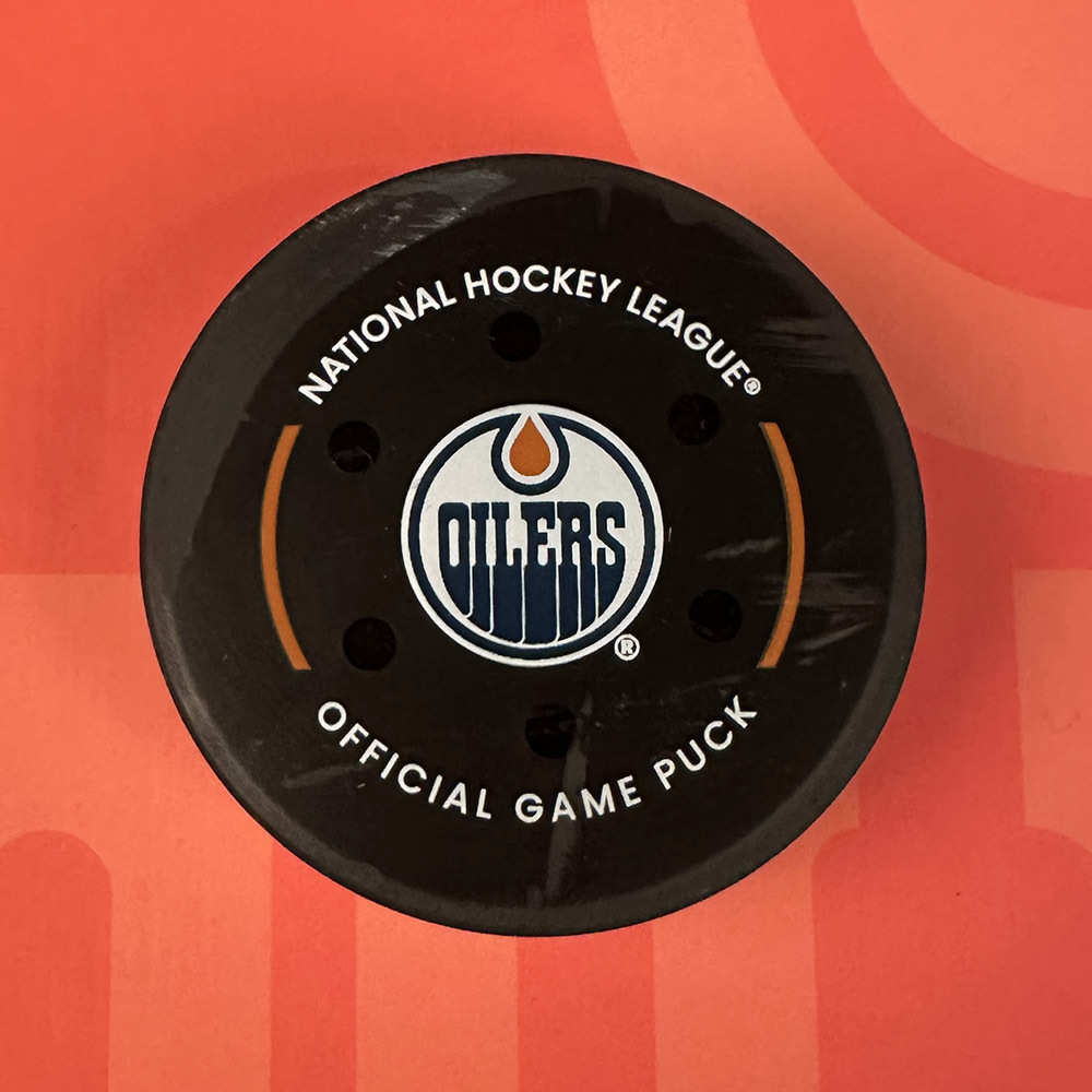 Welcome to the Edmonton Oilers Game Used Goal Puck Program Auction. Available to the highest winning bid in this respective auction lot is the following goal puck collected and authenticated by the Edmonton Oilers official NHL game used goal puck program. William Smith #2 - San Jose Sharks Goal Puck From April 11, 2025 Vs Edmonton Oilers (18th Goal of Season 2024-25 Season). Following the goal this official Edmonton Oilers NHL Game Puck was provided directly to off-ice officials who promptly labelled it with the details of the goal on a custom puck label which was then applied to the back of the puck. It was then given to Edmonton Oilers game-used equipment program staff for safe-keeping, inventory and authentication purposes. Please note each goal puck is game-used and sold in "as-is" used condition. All goal pucks will come complete with a Letter of Authenticity from the Edmonton Oilers Hockey Club and a tamper proof Edmonton Oilers Authentic Inventory Hologram applied to the back of the puck. Each puck will also come with a custom printed puck case as shown in the auction listing photo.