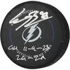 Connor Bedard Chicago Blackhawks Autographed Game-Used Puck vs. Tampa Bay Lightning on November 9, 2023 with Multiple Inscriptions