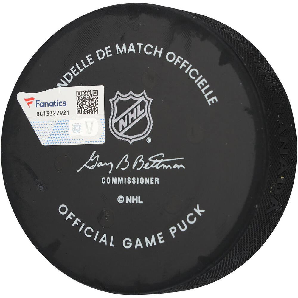 Own this Connor Bedard autographed game-used puck from the November 9, 2023 game against the Tampa Bay Lightning. This puck was collected by Fanatics Authentic in conjunction with the NHL and comes with an individually numbered, tamper-evident hologram. To ensure authenticity, the hologram can be verified online. This process helps to ensure that the product purchased is authentic and eliminates any possibility of duplication or fraud. Please note: This item is game-used and sold in "as-is" condition.