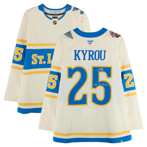 Jordan Kyrou St. Louis Blues Autographed 2025 Winter Classic Fanatics Premium Jersey with "Lets Go Blues" InscriptionJordan Kyrou St. Louis Blues Autographed 2025 Winter Classic Fanati...