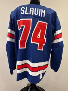 Jaccob Slavin USA Game-Used Blue Jersey worn v. Denmark on February 14, 2026, as a part of the 2026 Milano Cortina Winter Games.Jaccob Slavin USA Game-Used Blue Jersey worn v. Denmark on February...