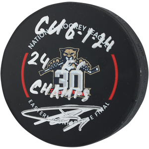 Sergei Bobrovsky Florida Panthers Autographed Game-Used Puck vs. New York Rangers on June 1, 2024 with Multiple InscriptionsSergei Bobrovsky Florida Panthers Autographed Game-Used Puck vs. Ne...